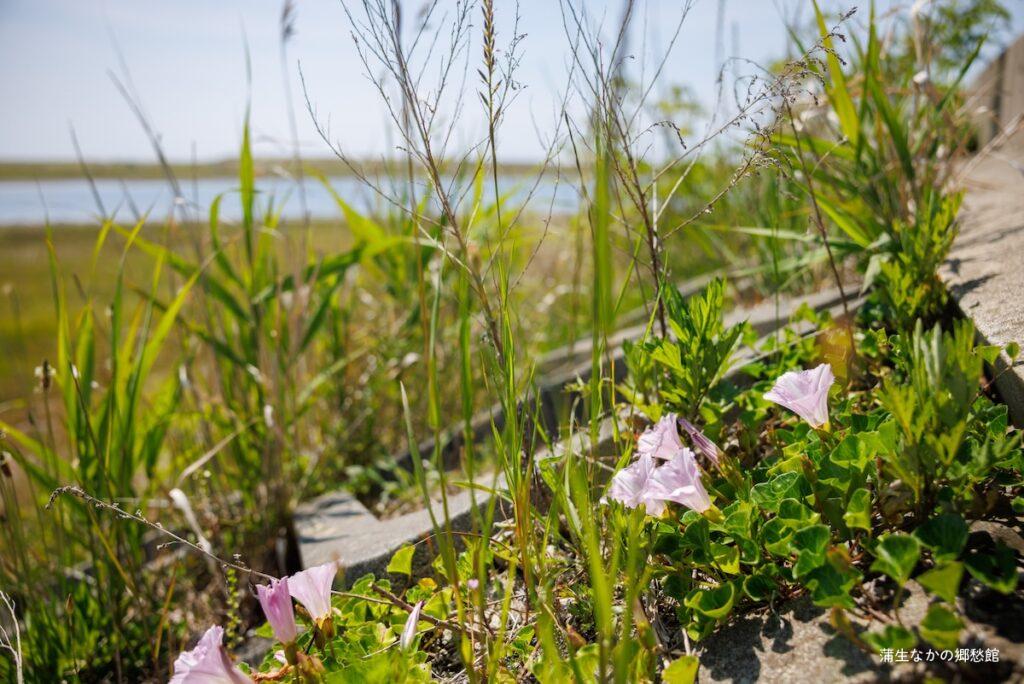 日和山の近くにハマヒルガオが咲いていました。蒲生干潟のまわりも全体的に緑色が濃くなってきた気がします。