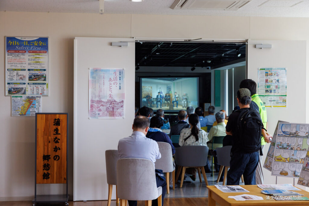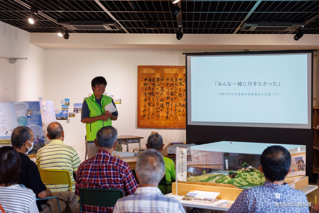 蒲生なかの郷愁館では、山開きに合わせた特別開館日を設けていました。今年3月に制作した朗読劇「みんな一緒に行きたかった」を上映。展示室からあふれるほどの大勢の方にご覧いただきました。