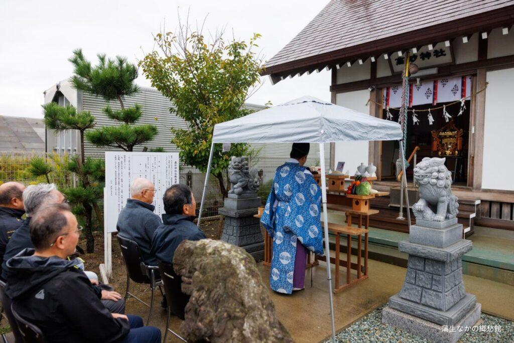 今回は、この地域であったお祭りに絡めての開催ということもあり、朝の始まりは高砂神社で子ども神輿のお祓いをするところから。(実は子ども神輿自体は大和神社のものなので、先にそちらの神社へもご挨拶に伺いました。)