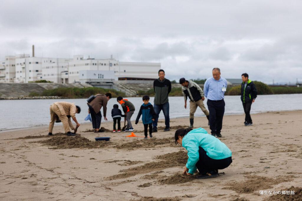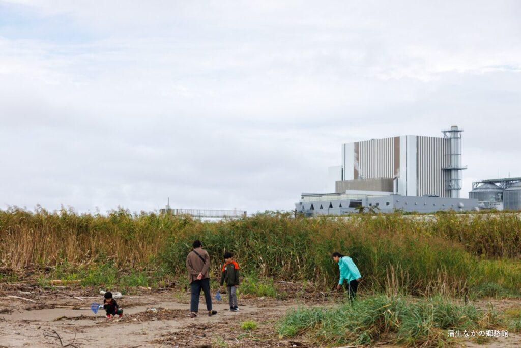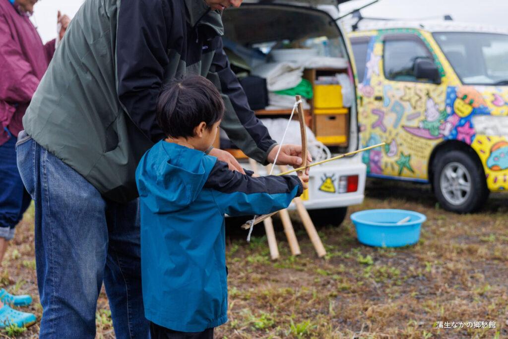 今回のプレーパークは、高砂神社を起点にして七北田川の河口や西原公園へと足を伸ばしていくプログラム。近所で取ってきた葦で弓矢を作ったり、地域の遊びを教わりながら竹でけん玉を作ったり、河口ではカニを探したり石を積んで遊びました。