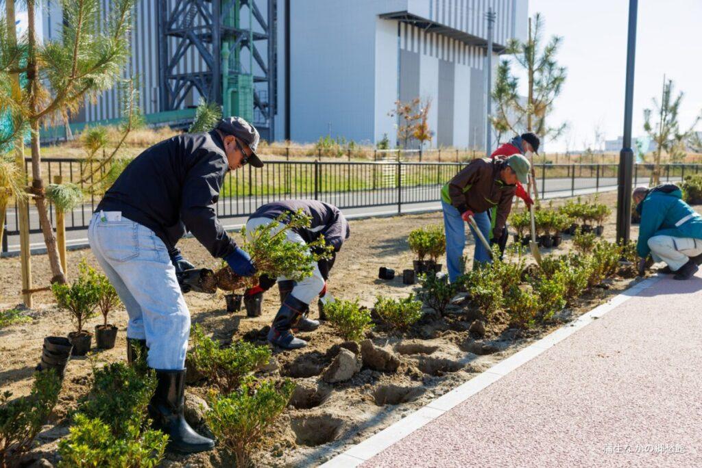 仙台市と仙台ふるさとの杜再生プロジェクト連絡会議主催のイベントで、オープニングでは中野小太鼓の演奏が披露されました。西原公園の東側に沿って、クロマツの他たくさんのサツキツツジが植えられました。