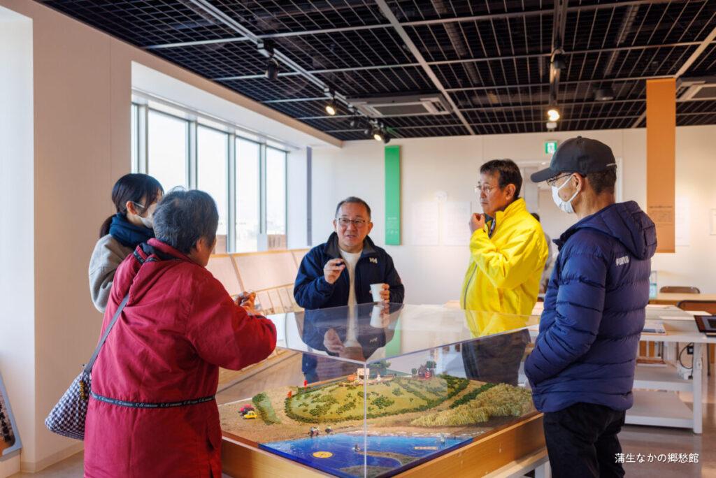 作業のあとは、館内でお茶っこ。震災以前の蒲生の住宅地図も広げながら、いろんなお話が交わされていました。郷愁館の展示室にある日和山模型の製作に関わった方もいらっしゃり、この部分はこう作ったの、なんてお話もいろいろ聞かせていただきました。