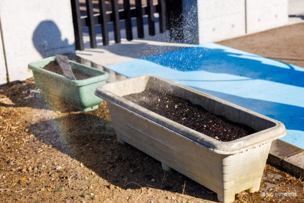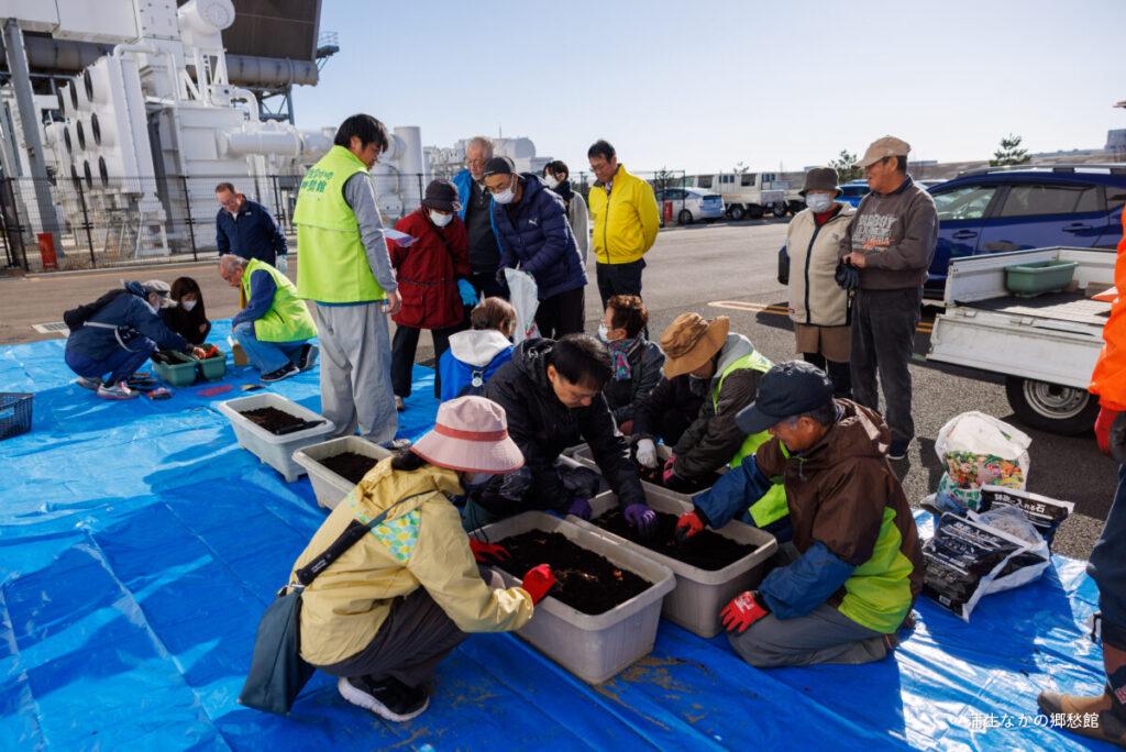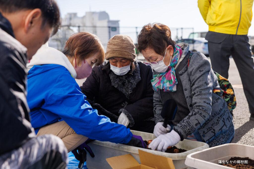 花壇整備は毎月少しずつやってきているんですが、今回は一般の方も参加しやすい日として開催。初めていらっしゃった方々も一緒になって、チューリップの球根をプランターに植えていきます。