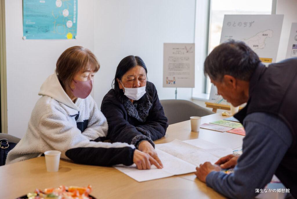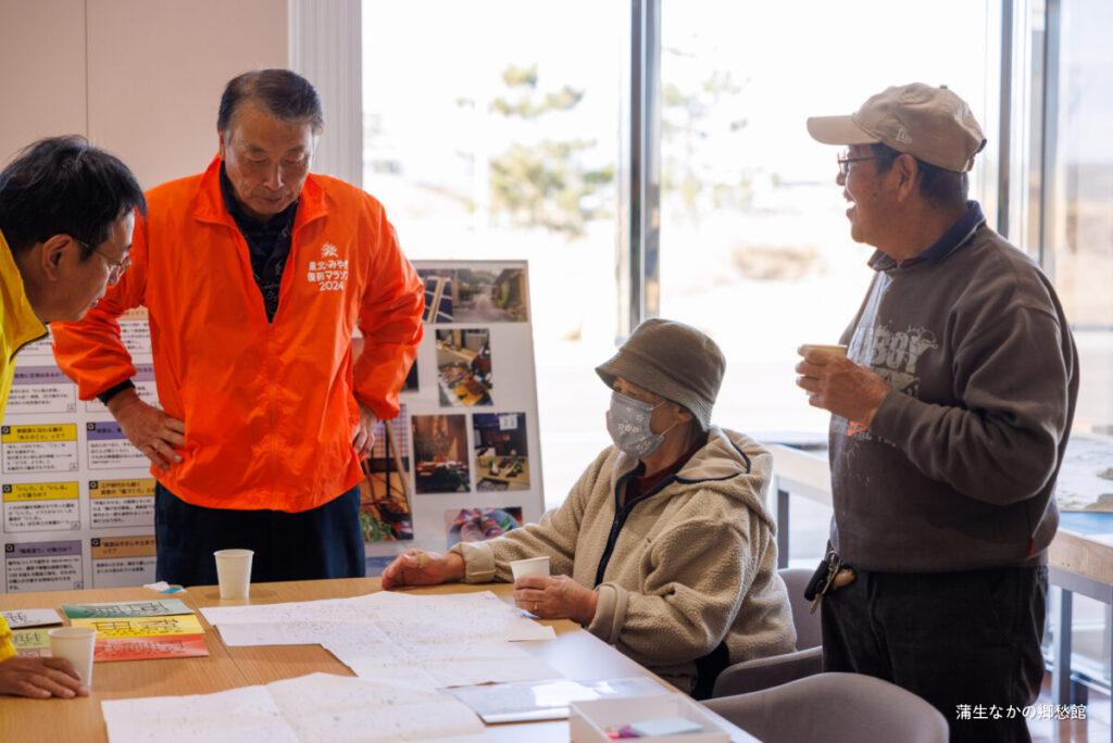 作業のあとは、館内でお茶っこ。震災以前の蒲生の住宅地図も広げながら、いろんなお話が交わされていました。郷愁館の展示室にある日和山模型の製作に関わった方もいらっしゃり、この部分はこう作ったの、なんてお話もいろいろ聞かせていただきました。